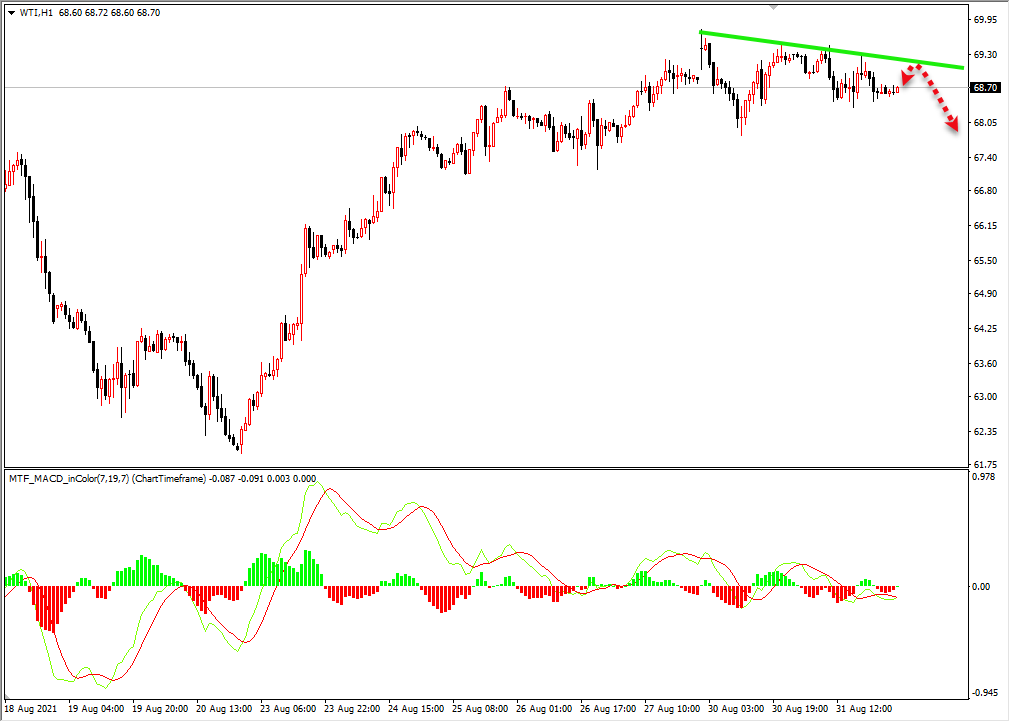 原油因为受到飓风和增产影响,所以原油走4小时区间震荡。今天关注4小时阻力位。
