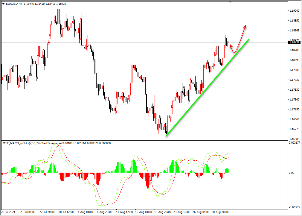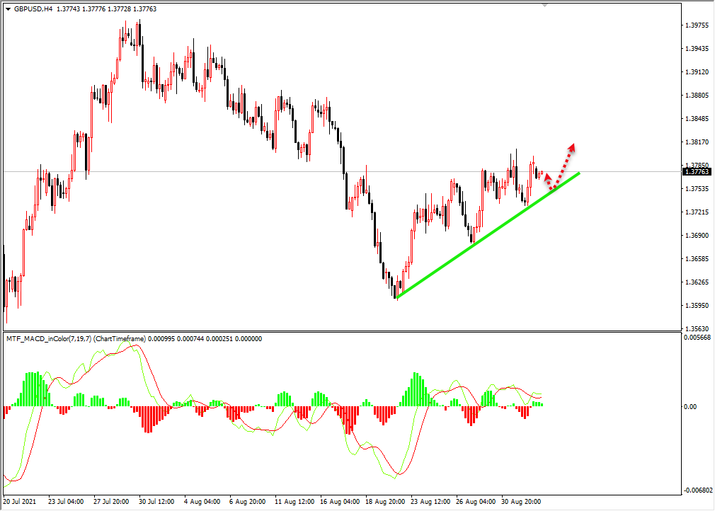 英镑昨日正如预期展开上行,今日关注下方4小时趋势线支撑位做多。