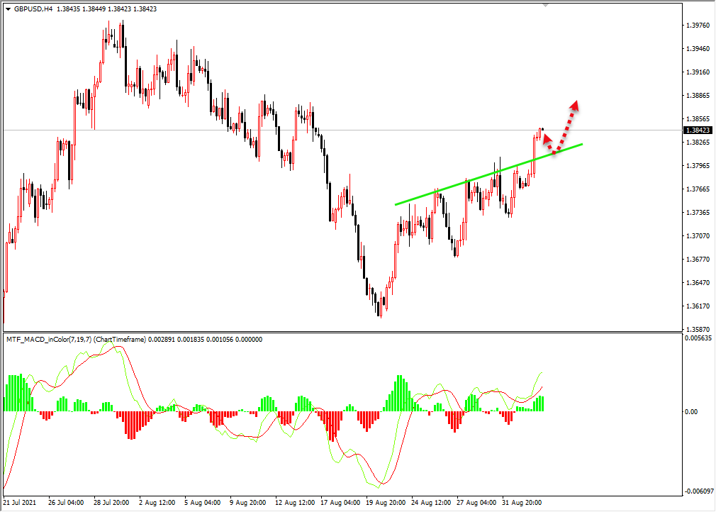 英镑昨日强势上涨,今天关注4小时支撑位继续做多。
