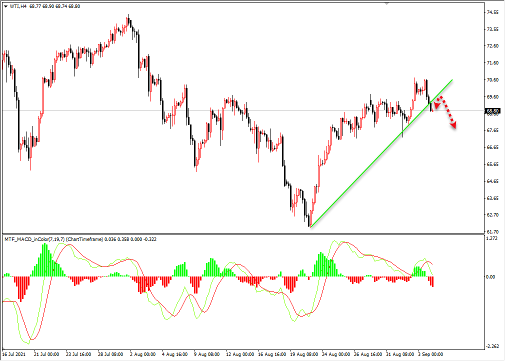 原油4小时上升趋势线也已经突破,今天原油回调到压力位直接空。