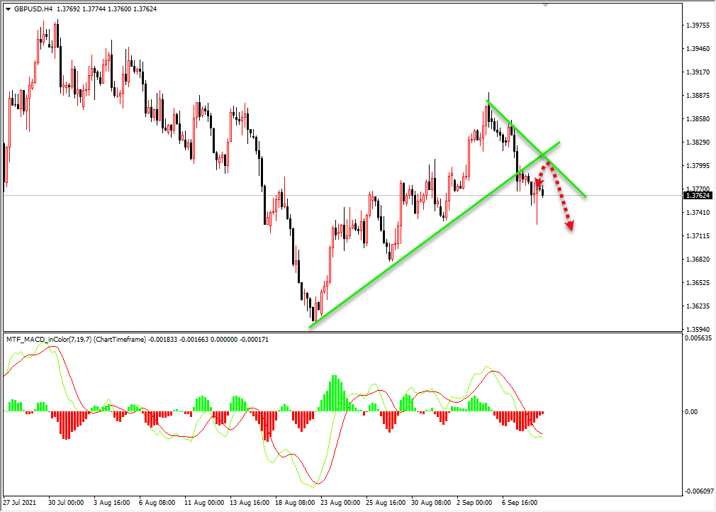 策略:英镑1.3800区域空,止损1.3840,目标:1.3750-1.3680