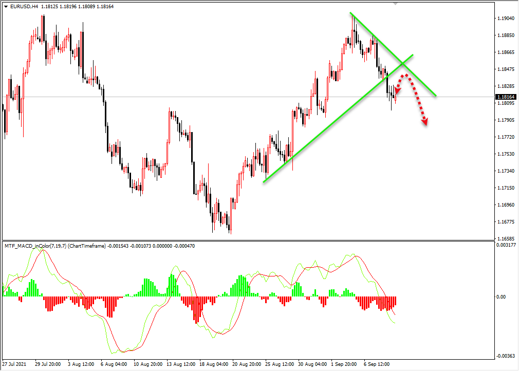 欧元跌破上升趋势线,今天先考虑反弹空为主,今日重点关注欧洲央行利率。