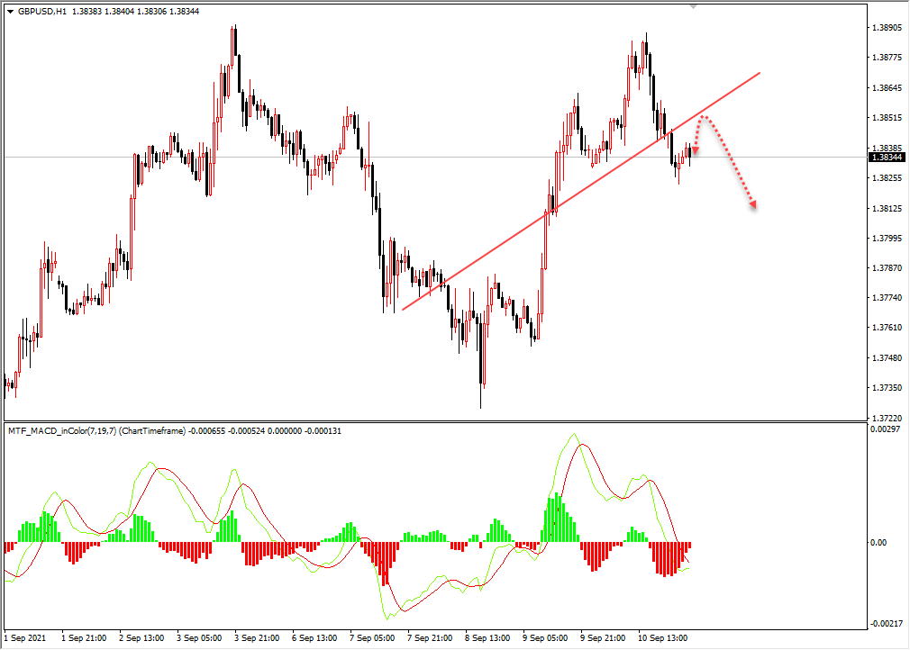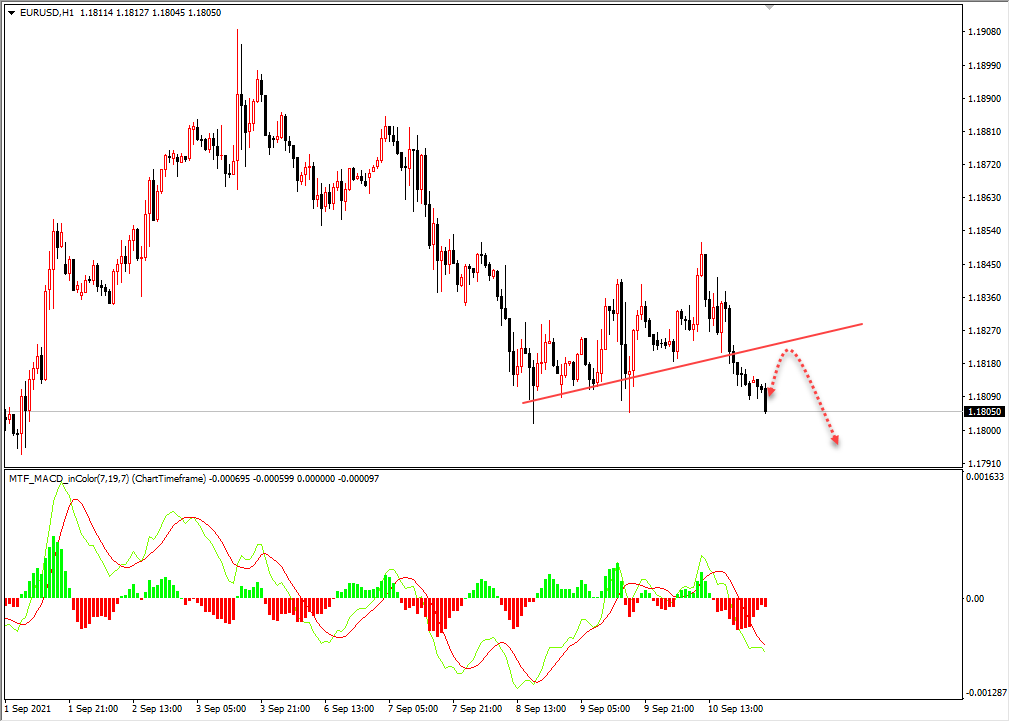 欧元短期跌破1小时支撑位,日内欧元回踩压力位先考虑逢高空。