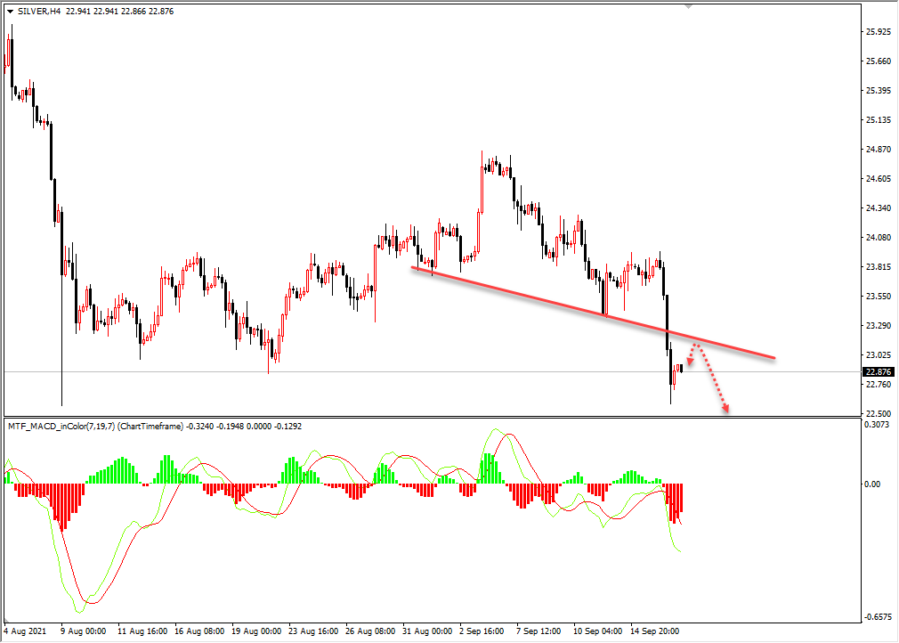 白银跌破日线支撑位,所以今天日内关注4小时压力位空