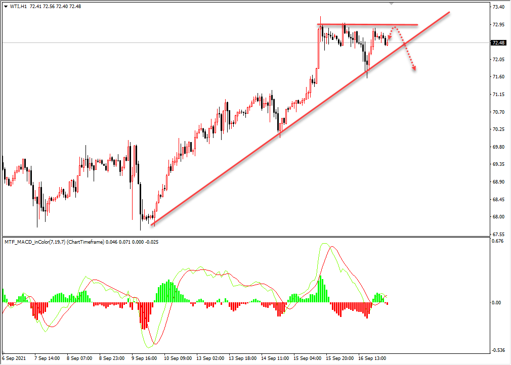 原油周四走震荡,沙特周四表示七月原油出口量上升至一月来最高。原油日内1小时压力位能否起到有效压制。下方关注趋势线阻力位。