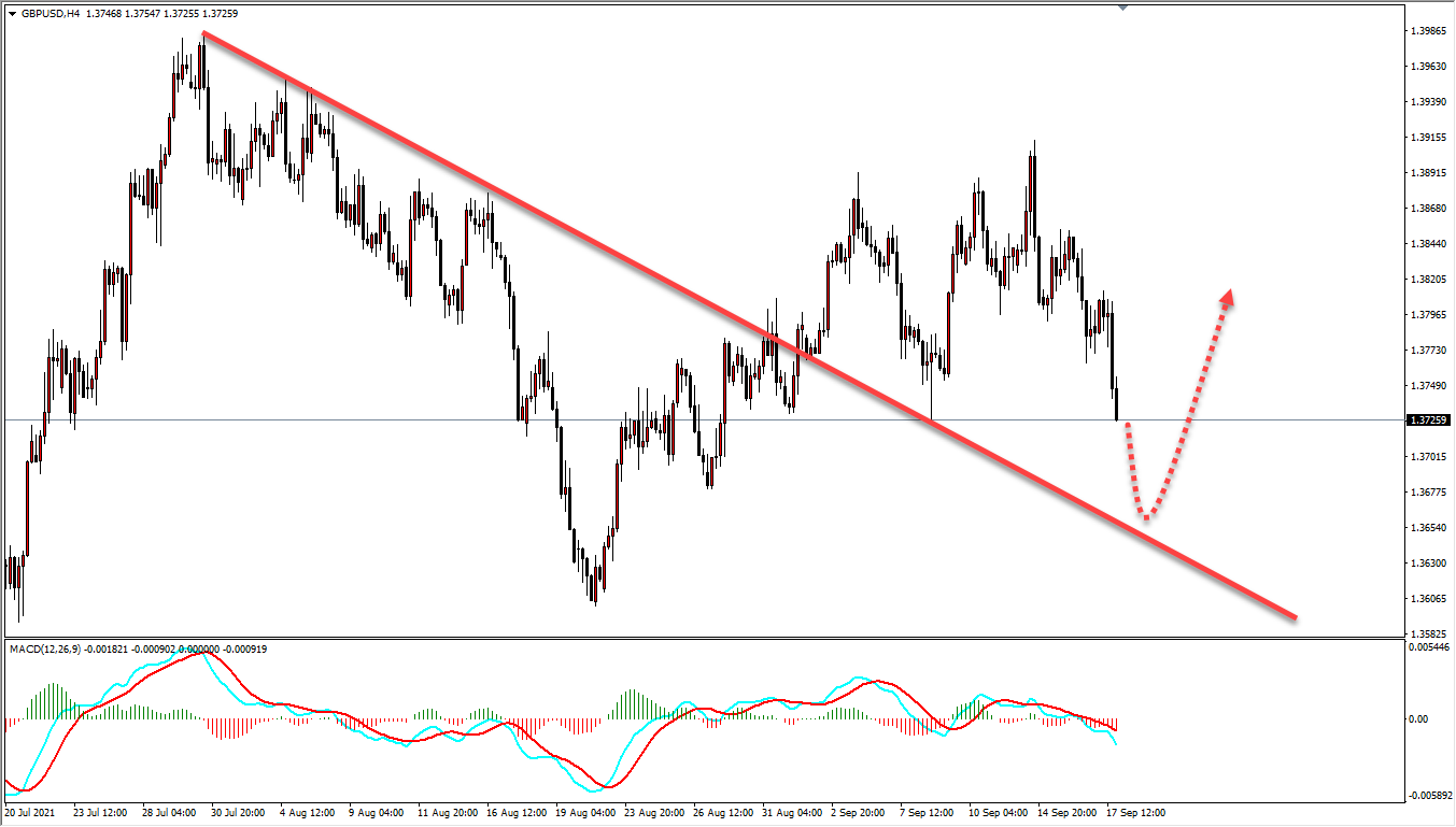英镑8月零售销售以外连续下滑创下25年最大降幅,所以英镑正如预期展开下跌。英镑下周看下跌至4小时支撑位后反弹。