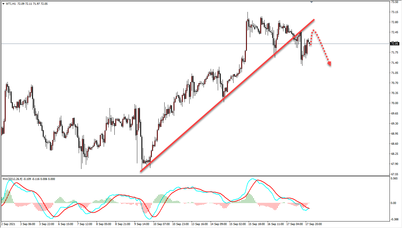 原油周五正如预期下跌,因飓风停产的能源公司停产后重新开始生产。原油短期上升趋势线已经突破,所以下周原油反弹先考虑做空。