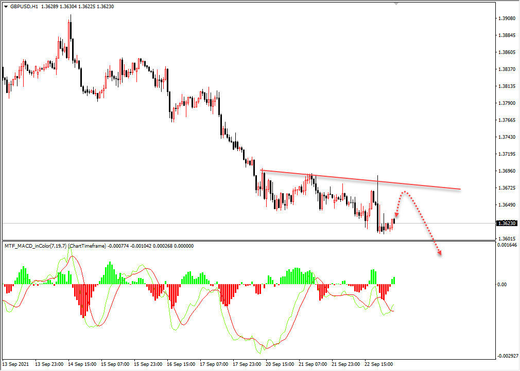 策略:英镑1.3670区域空,止损1.3700,目标:1.3600-1.3550