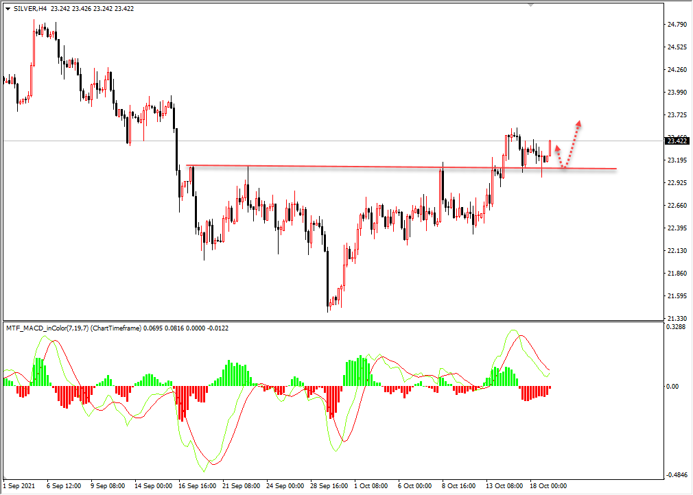 白银昨天相对回抽比较猛烈 ,今日继续关注4小时支撑位23.10区域考虑逢低做多。