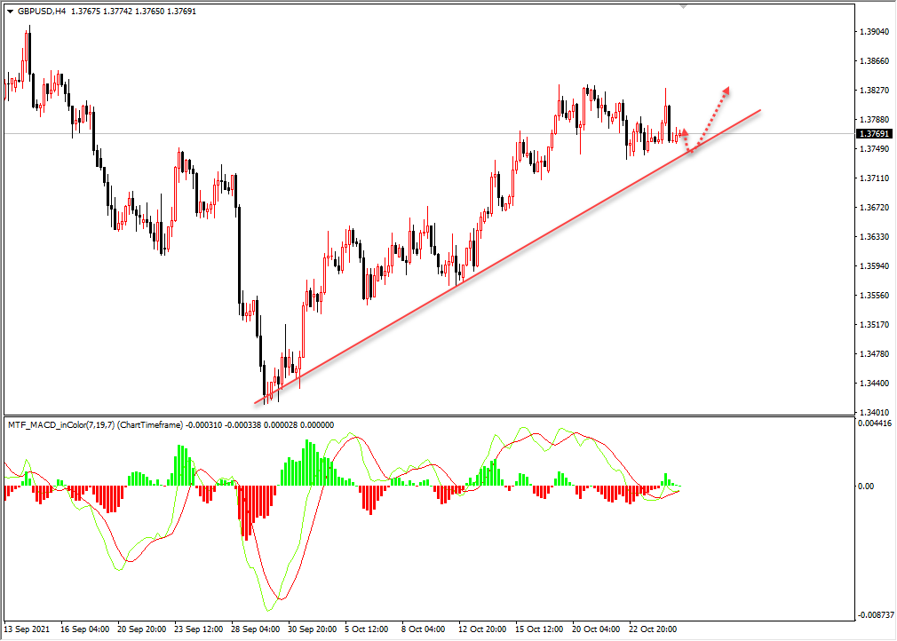 英镑正在由强势上涨转变为震荡上行,所以日内关注下方支撑区域1.3820附近不破继续做多。
