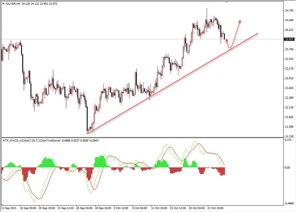 策略:白银23.60区域多,止损23.20,目标:24.40-24.90