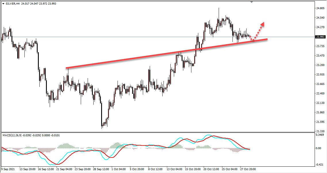 策略:白银23.80区域多,止损23.50,目标:24.30-24.80