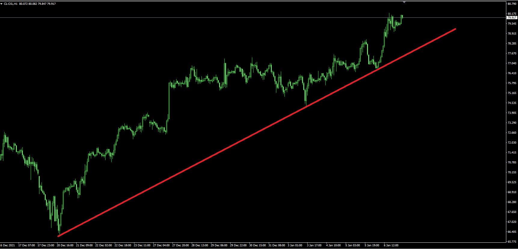 油价周四上涨超3%,美油盘中一度上破80关口,最高至80.24美元/桶,为2021年11月18日以来最高,受哈萨克斯坦紧张局势升级影响,以及美国寒冬天气扰乱原油输送,加之OPEC产量增加或不足以满足需求,令市场失望,为油价多头助力。