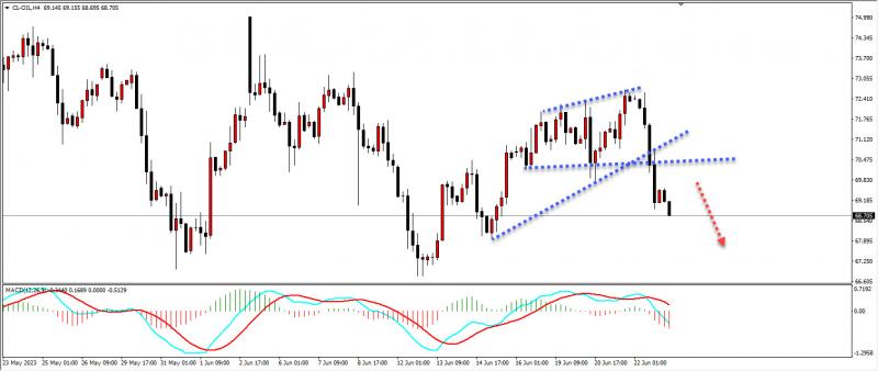 原油在前期4小时压力位承压后下跌,随后突破4小时趋势线支撑位并且突破后回踩了一下上升趋势线形成的压力位,今天原油关注能否回调一下。千万不要直接追空。