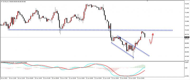 原油上周五下跌至1小时支撑位开始反弹随后突破1小时短期下跌趋势线,今日关注原油能否二次调整下来给一个做多机会,上方关注1小时压力位能否有效突破。