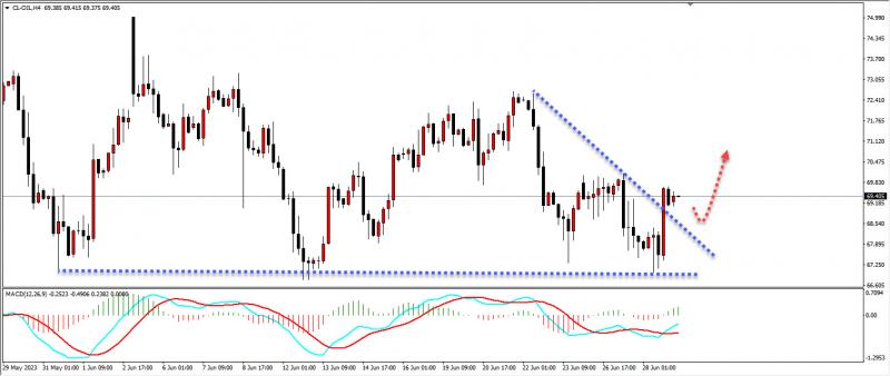 原油昨日我们在分析中说道原油日线走三角形,持续关注三角形下边缘,出信号做多,现在原油4小时已经突破短期下跌趋势线,今日关注能否二次回踩给一个做多的机会,不可强求。