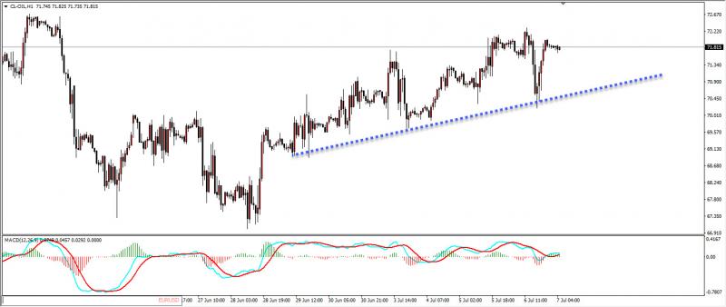 原油昨日美盘下跌至1小时支撑区域,再次拉升至高位,今日关注原油回调力度,如果回调力度较强,那么回调的位置就会比较深,回调下来在考虑做多。