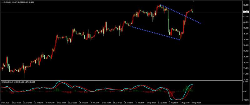 原油昨日在4小时长期上升趋势线企稳,然后开始拉升,现在短线也已经上破1小时下跌趋势线支撑位,今日关注原油的回调力度,短线只要4小时趋势没走坏,仍然可以做多。