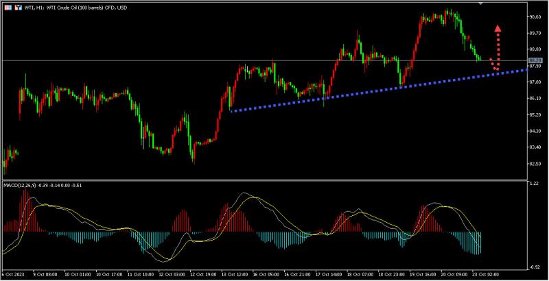 上周美国总统拜登和英国首相访问成果褒贬不一,并且之前拜登和阿拉伯国家领导人的重要会议都被取消,但是随后和埃及总统讨论大撑异响协议,将通过埃及释放方式向加沙地区提供援助。从技术面看,目前原油1小时关健的趋势线线仍然有效,今日关注1小时趋势线支撑位,出现企稳信号做多。