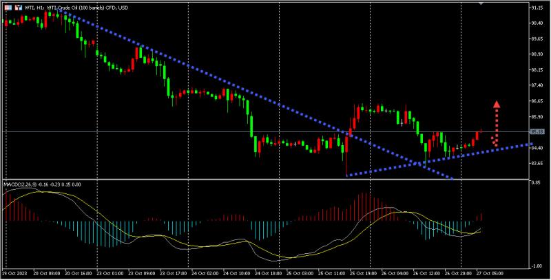 原油昨日回踩1小时下跌趋势线突破以后形成的支撑位,随后展开调整,目前原油有1小时走双底的可能性,今日关注1小时下方支撑区域出现企稳信号做多原油。