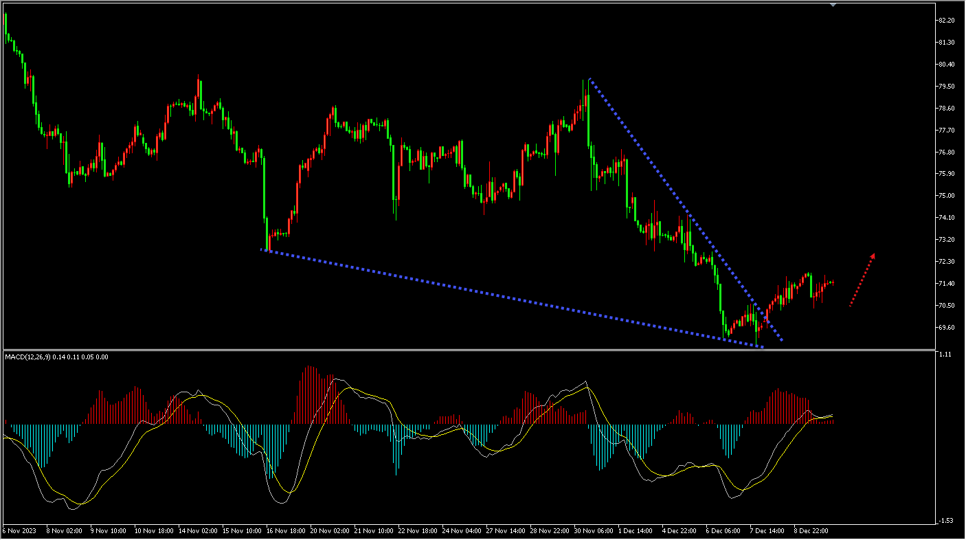 本周,沙特能源部长将就进一步减产或延长至2024年的可能性提供最新消息,引发了对原油市场的关注。供应担忧和需求潜在反弹推动着原油价格持续上涨,但市场参与者表现出谨慎和犹豫。原油目前期在4小时支撑位获得支撑后开始反弹,然后突破短期下跌趋势线压力位,今日关注原油回调力度,出现企稳信号后做多。