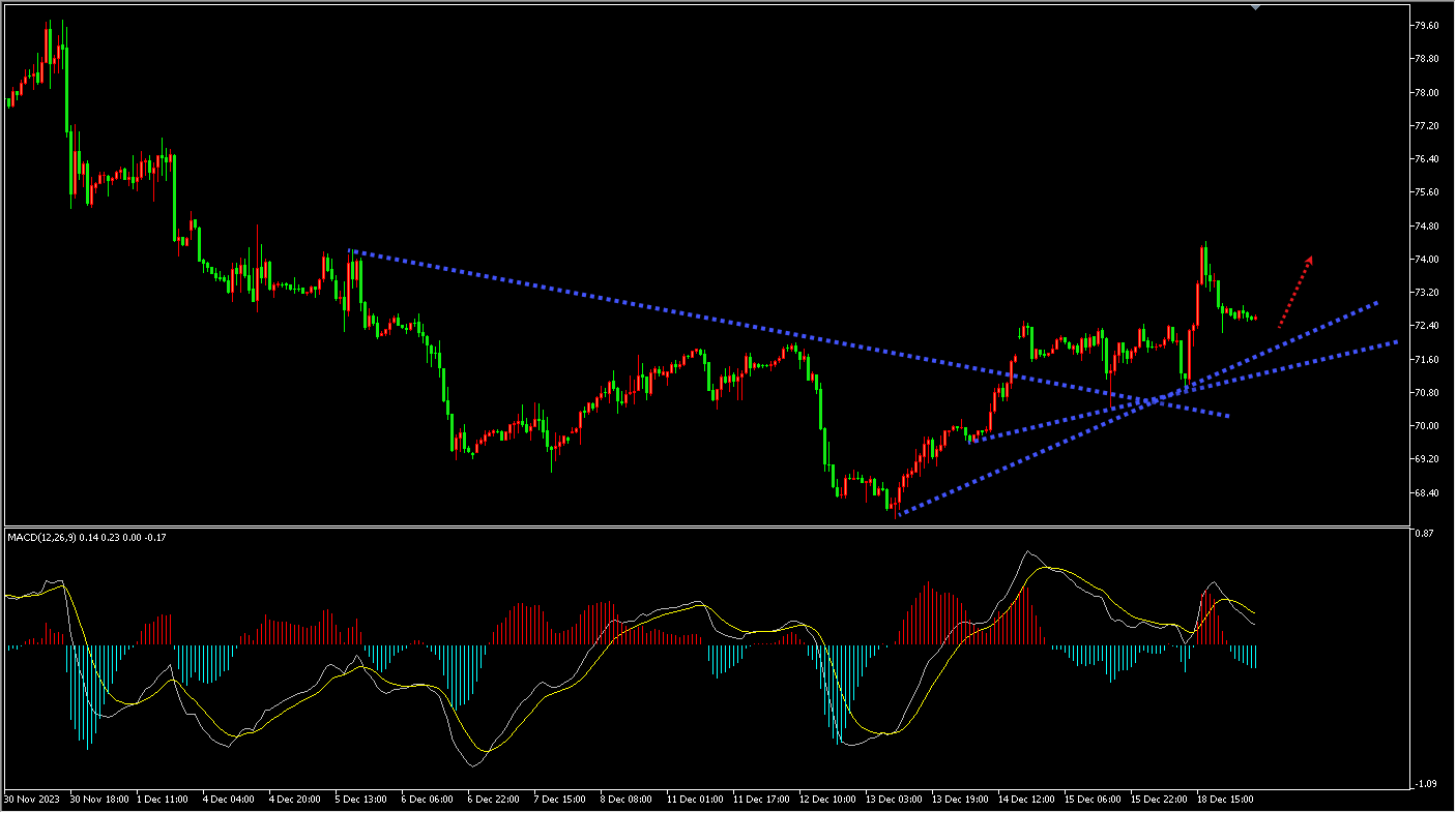 周一油价按照预期上涨近2%,因投资者担心在与伊朗结盟的也门胡塞武装组织袭击红海船只后,海上贸易和供应成本受到干扰。盘中早些时候,两个基准指数均上涨近3美元/桶。今日原油关注下方1小时趋势线支撑位表现,出现企稳信号后加仓做多。