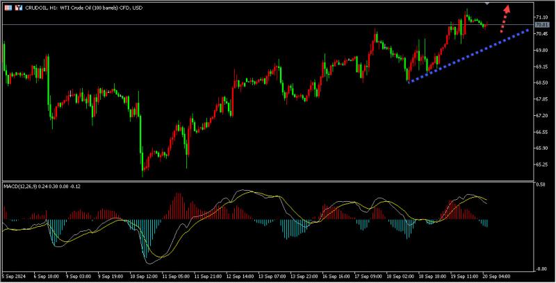 油价周四延续上升趋势,上涨超过1%,美原油10月期货创下两周新高至72.49美元/桶,美国大幅降息和全球库存下降盖过了需求担忧,此外,美国官员承认拜登无法实现加沙停火,同时以色列对黎巴嫩发动猛烈袭击,也给油价提供支撑。今日原油继续关注下方1小时上升趋势线支撑区域,调整企稳后短线做多原油。同时投资者要继续关注美联储的决策和全球经济情况。同时,地缘政治局势的发展以及全球原油库存的变化也将对油价产生重要影响。