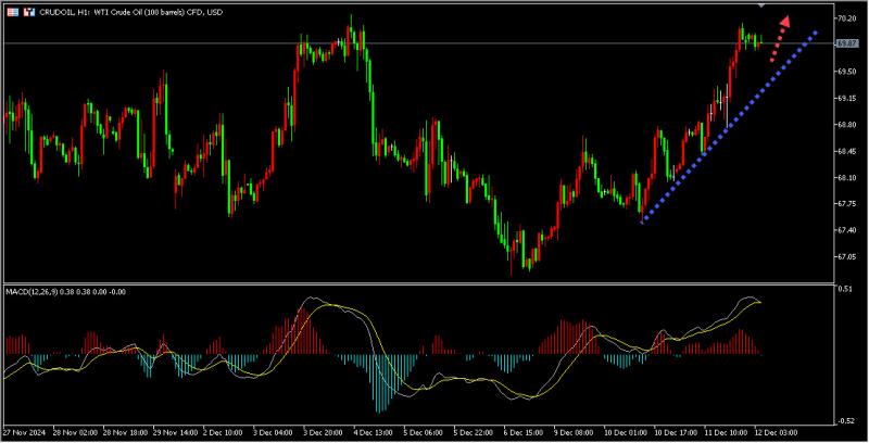 今日投资者关注原油下方1小时上升趋势线支撑区域,原油价格回调企稳后继续做多原油。