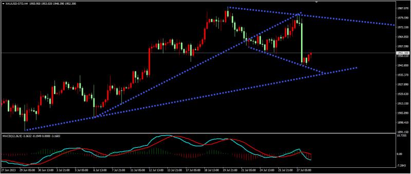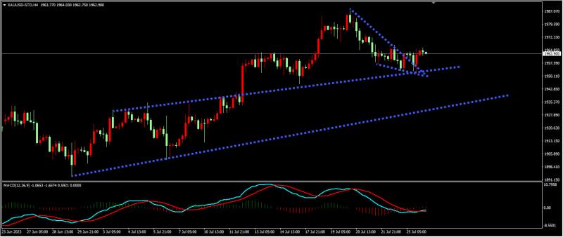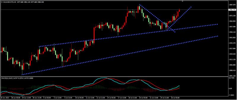 北京时间周四(7月27日),美元兑一篮子货币周三下跌,此前美联储加息25个基点,至16年以来的最高水平,因美国通胀依然处于高位。此次加息将指标隔夜利率目标区间提高到了5.25%-5.50%,而随附的政策声明则为再次加息敞开了大门,金价延续涨势,受助于美元和美债收益率下跌,投资者消化主席鲍威尔的发言。 7月27日,