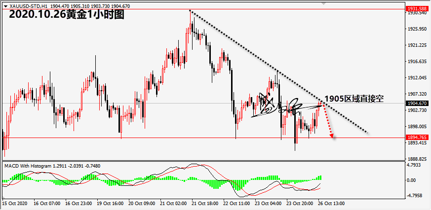 黄金 震荡是为了更大的波动蓄势。本周一和周二笔者连续潜伏黄金高位区域的空头,周三终迎来“瀑布”式的爆发下跌。1910区域的空头无疑是最佳的空头位置,成功暂获40美元。经过周三单边大幅的下挫后,今日难以再有周三那样的波动。今日市场将需要关注美国第三季度GD初值数据,以及欧洲央行利率决议和欧洲央行行长拉加