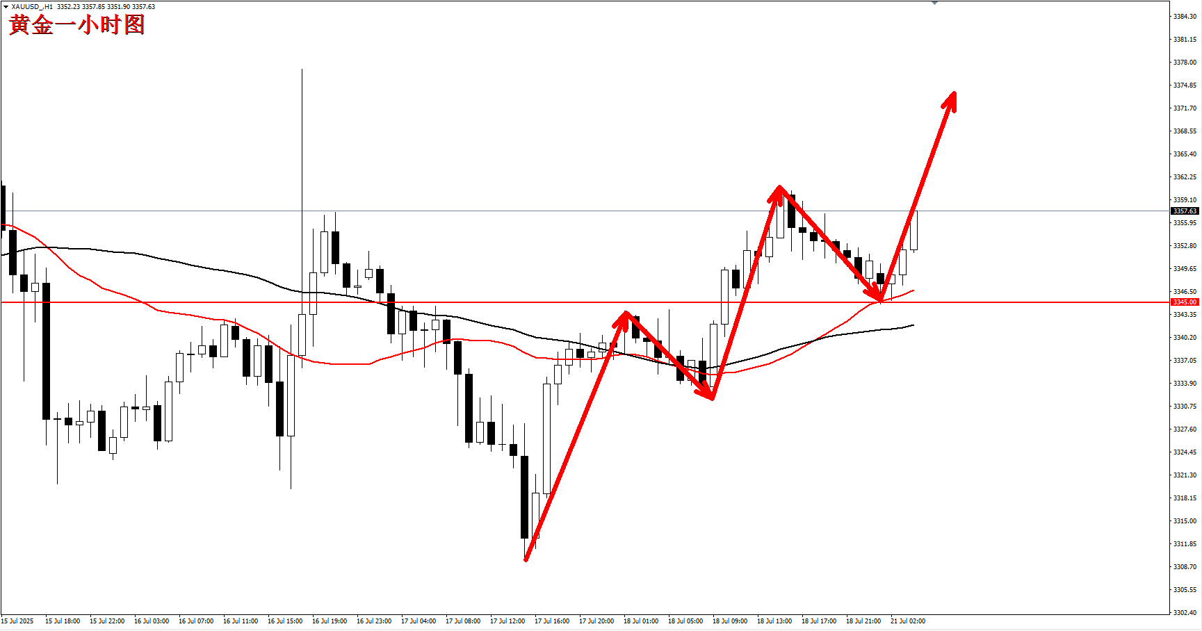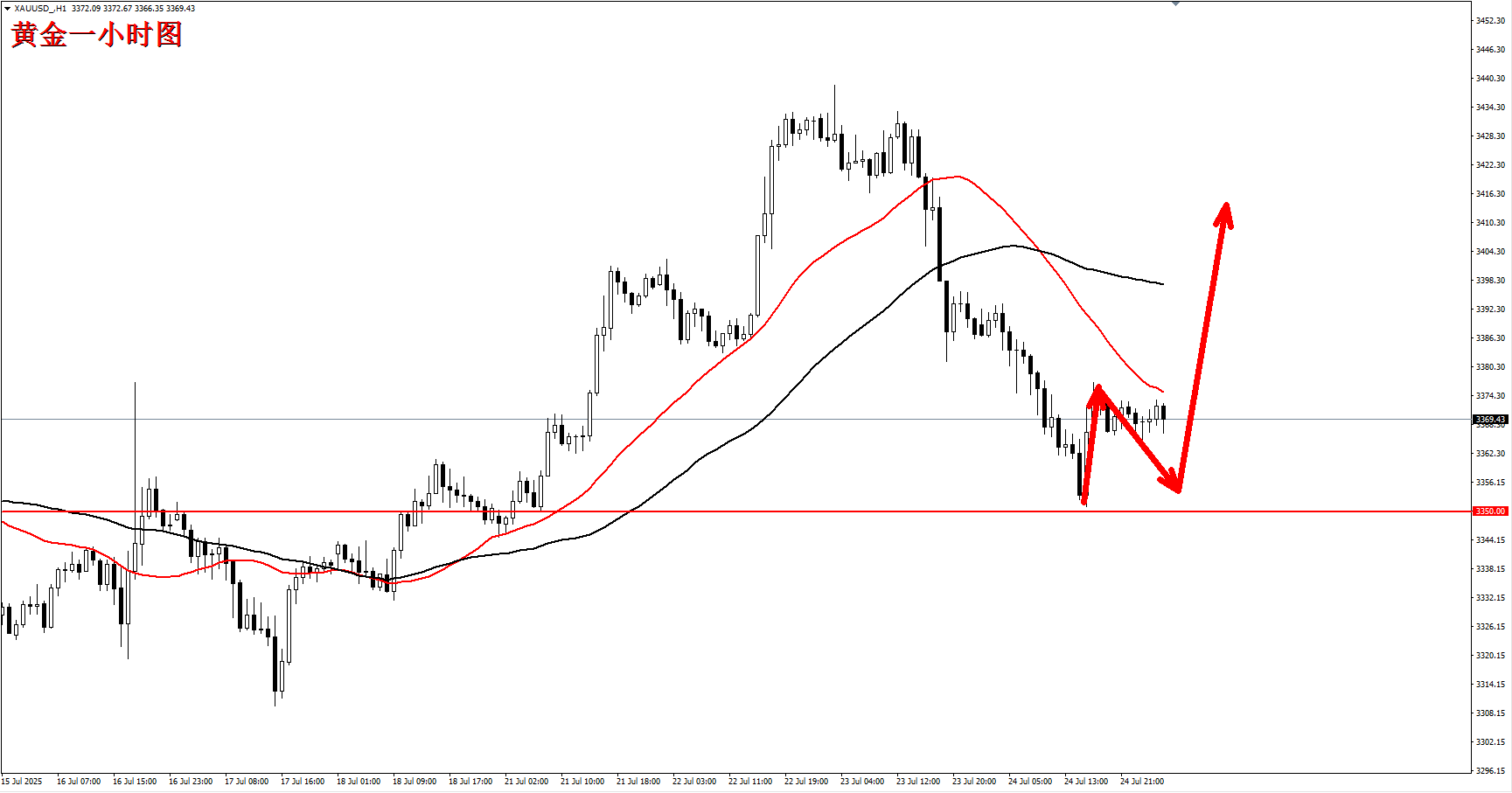黄金昨日持续走低,晚间临近3350附近开始见底回升,而且从日线级别上看,金价刚好回踩上升趋势线支撑位,大方向带来的趋势力量强势托举金价,尽管短期之内还在调整,但是方向很明确,回落做多就对了! 一小时级别的走势支撑位在3350一线,昨晚凌晨金价已经在震荡筑底,今天周五有进一步拉升的可能,所以今天我