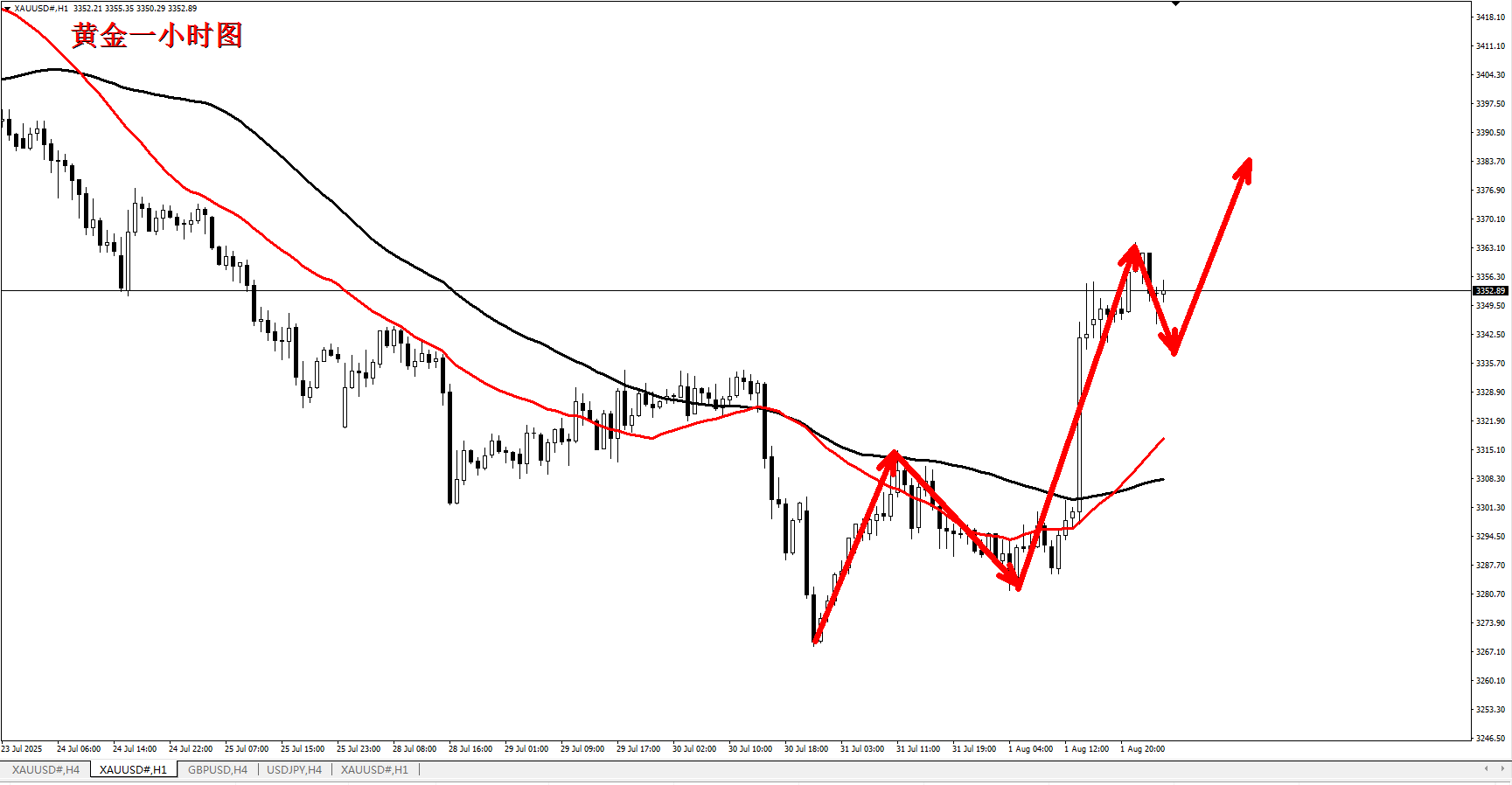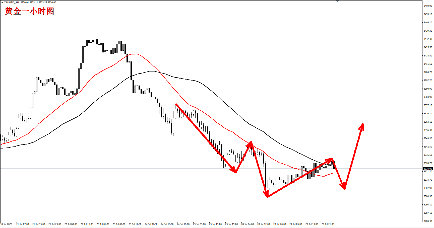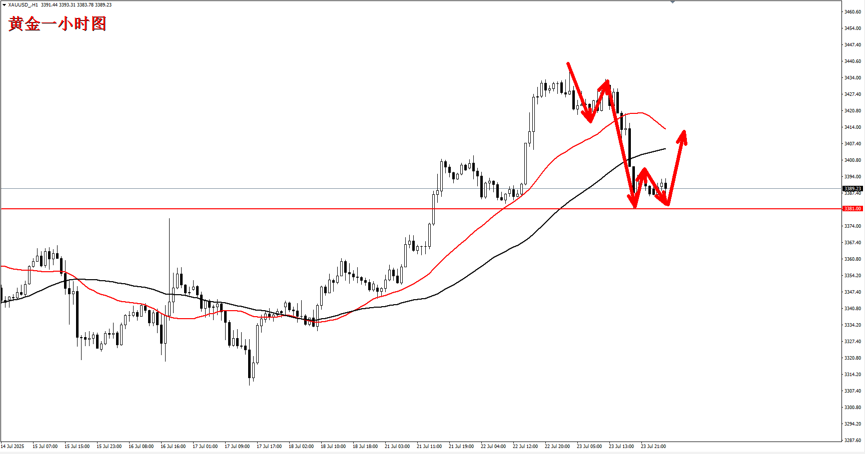 昨晚黄金直线下跌,跌幅五十多美金,最主要的原因还是因为欧美关税的影响,昨晚欧美的贸易谈判确定了15%同等关税,导致金价下跌,那么今天黄金已经走出底部结构,明确的说已经止跌,而且上涨的趋势并没有被破坏,今天保持看多! 昨晚的低点在3381一线,今早金价下探并没有跌破3381一线,那也就说明,在没有跌破