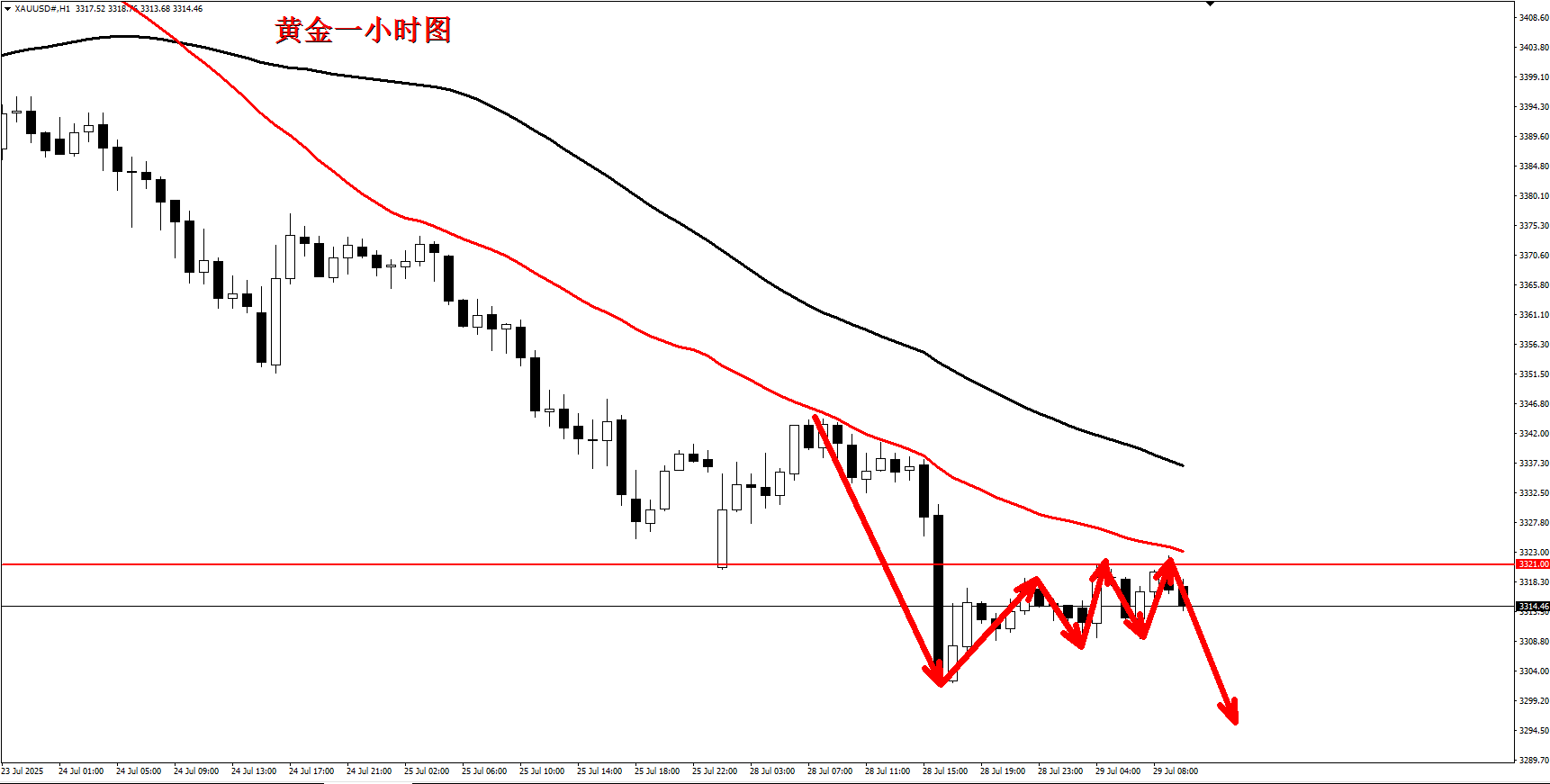 黄金没能成功反包,市场跌破关键位后延续下跌,根本原因还是因为昨晚的AD数据和凌晨美联储利率决议的结果,让金价暴跌了60多美金,目前金价跌破3300关口之后已经走出延续下跌的格局,日内的多空转折点也来到了3333一线,也就是说,今天价格稳在3333之下我们只空不多! 日内金价一直走反弹,但午后高点触及3315