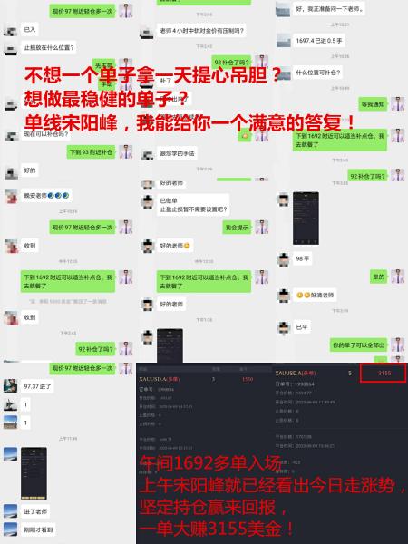 近期有很多投资者朋友跟我说,他们相信老师的实力,想跟上操作,但是由于之前的亏损经历对平台的安全方面有所顾虑。宋阳峰理解你的顾虑,但是如果宋阳峰合作的平台都有问题,那么哪来的这么多实仓客户朋友呢?我的实力再强又有什么用呢?如果你想跟这些已经开始操作的朋友一样,让你的资金获得更大的收益,你来找我,我自然能帮到你!