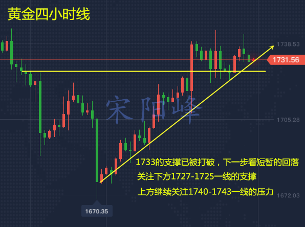 操作上:回撤1726-1728一线企稳看多做多,目标继续看1738-1740,短时间还无法到达1745这样的高度,企稳1740附近继而看回撤!