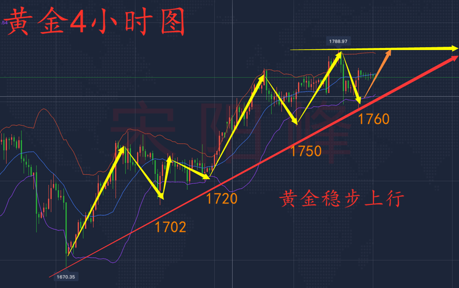 3、从周线(包括月线)形态来看,周线三连阳,中长期强势多头完好。短线昨日探底回升,下方1760/58区域形成了重要的底部支撑,也表明了短线多空只要点位选取得当都可以获利,但是大方向偏多的情况下建议更是以做多为主交易思路。