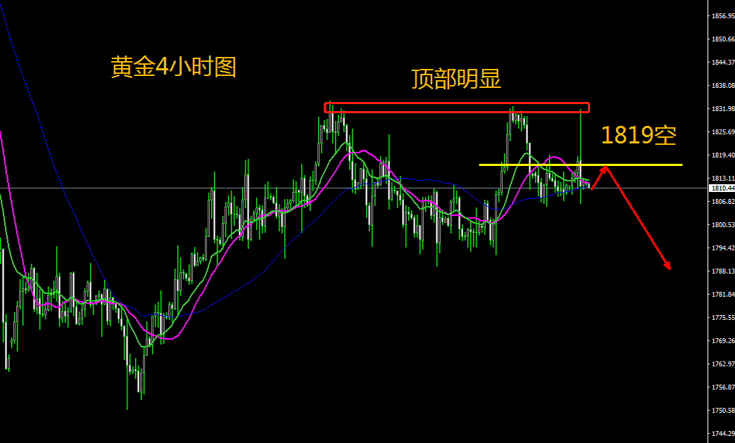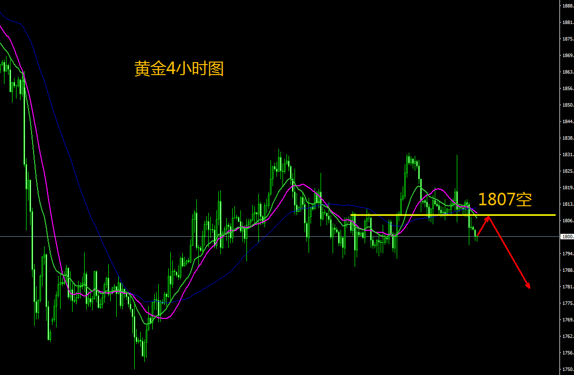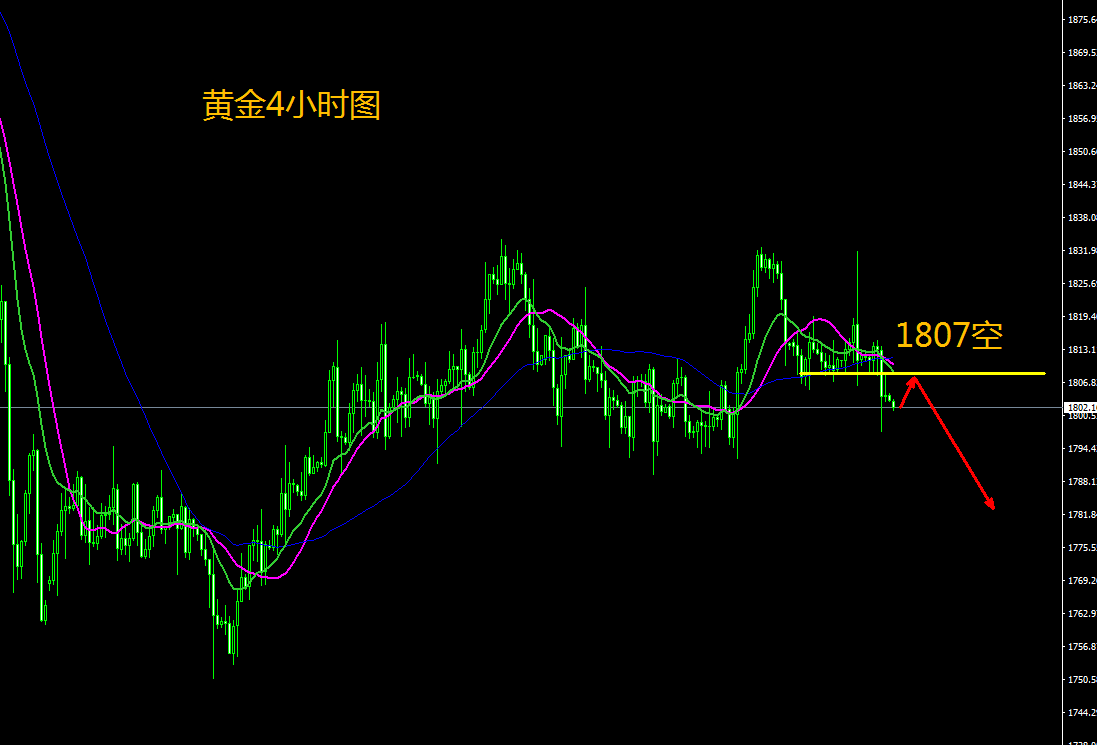 黄金弱势向下,1807空进场! 做交易要管的住自己的手,具备鹰一样的眼光,狼一样的嗅觉,出手则直达要害,拿下波段利 润,不在乎3美金的利润,则可以拿到30美金的波段,每天只干一个方向,坚定原则! 从目前走势来看,黄金弱势下行,昨夜冲高1808快速的回撤,4小时图中15均线和中轨还有50 均线都是阻力,反弹至15均线直
