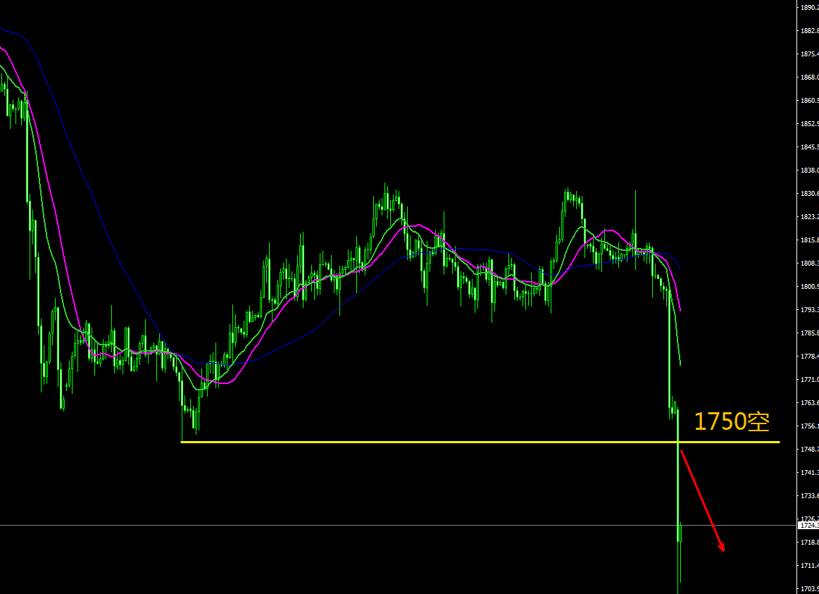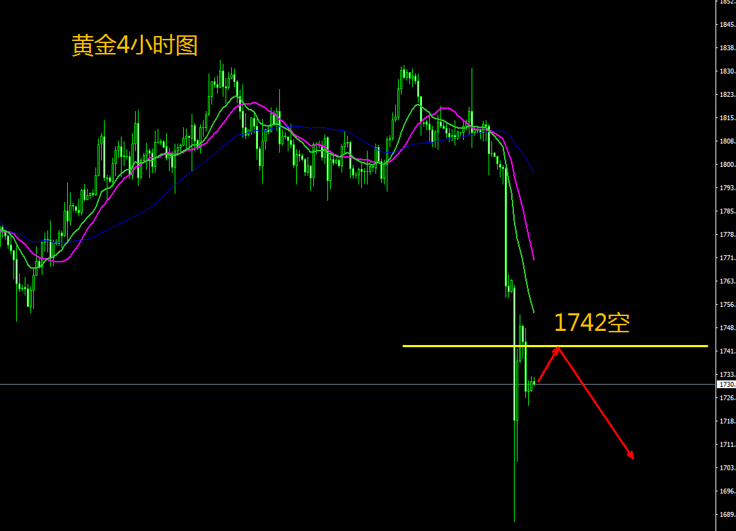 黄金一路空,大波段至1686,我们从1831开始布局空单,如约暴跌,实力不用多说,这种行 情只有顺势做空,才是稳健策略,文章中我已经多次提醒不要去抄底做多,希望各投资者都听 进去了,当然信任者自知康哥单子的准确性,战队里高位空单拿着的,周一睁开眼睛,仓位来 了一翻,睡觉赚钱的感觉不错! 从盘面来看,黄金跌破
