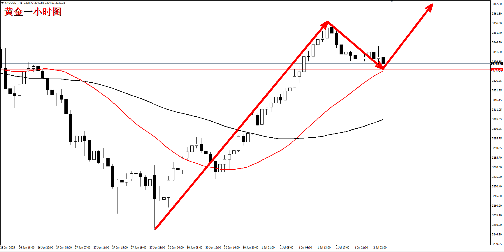 黄金这两天跌不下去,短线已经开始有筑底的迹象,自从日线探底拉升之后,昨天日线收阳,多头开始反攻,并且一小时线低点在抬高,昨晚的博文我们也说了,后市下方的关键点就是在3295一线,如果短期之内跌不下去大概率会走触底反弹,而且昨晚我也开始让大家转变思路,回落之后可以考虑做多! 今天的行情还是跟昨