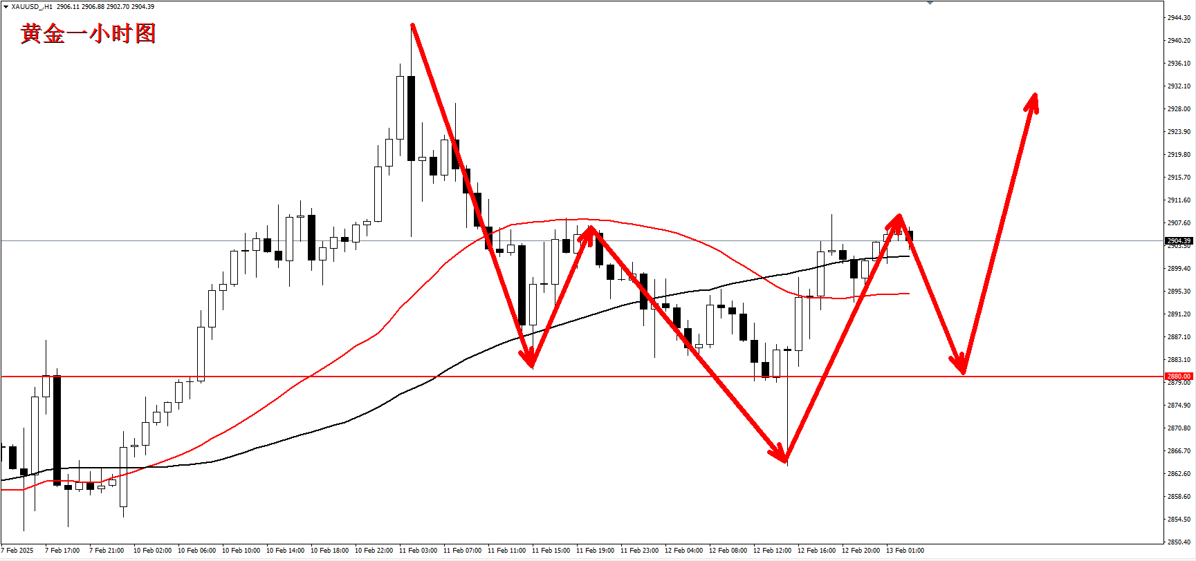 黄金昨天收了个阴线,但这倒也不是黄金多头的结束,反而是金价迎来调整之后确认下方支撑再次拉升的表现!所以早盘我们依旧是保持看多!回落做多! 本轮一小时金价走势最低调整到2882附近,而上一浪的顶点转换位在2886一线,而黄金昨晚跌破2886一线也仅仅是刺破之后再次上涨,短线来看,盘中2886支撑还是较强,