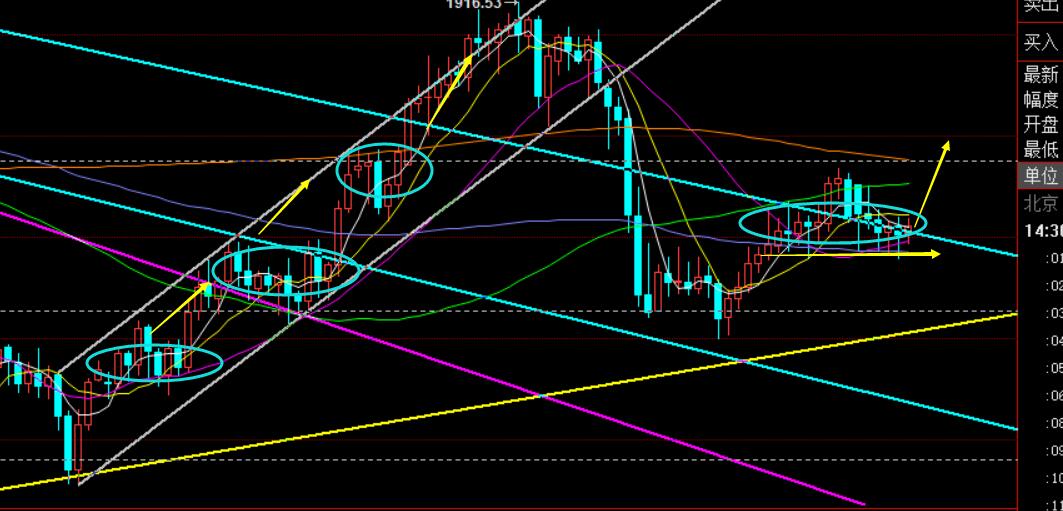 第三,黄金日线级别,形态上和周线一样存在多空矛盾,上方短期10日和66日压制,下方中轨以及半年线支撑,价格不断的来回穿梭于2075-1960所连接的趋势下滑线;只是有一点相对明确,作为底部1750企稳上来的这一波反弹,只要最后一次回测支撑不破位,整体会维持反弹节奏,也即是守住1790不有效破位,最终还是倾向于往上破,会雷同1677前期的那一波走法;另外,由于1916打压的一波属于断崖式快速砸盘大幅猛跌,因此,后市逐步反弹上行,依然会在某一个压力出现承压转向,一口气难以V型反转上破1916,这点目前而言暂时不急,需上破1833再说;