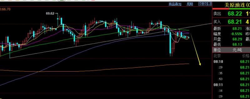 昨日白盘支撑68.5上反弹至69.2,力度不太够,未能抵达预期最佳的做空点,美盘价格破位68.2支撑后,提示68.1直接追空,最低下探67.1一线,尾盘有所反抽,也是一定的修正,4小时失守中轨成压力,今日关注68.6阻力,凌晨高点,支撑67,要破位67才能短期见顶,开始下滑走跌!