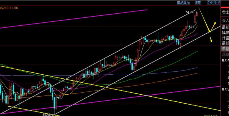 原油早评思路: 日线和周线连阳上涨,短期很强劲,似乎存在二次摸高动作,不过个人认为75下压力存在,本周还是谨防调整;今日早间开盘跳空高开,缺口存在往往容易回补,建议拉高先压制短空试探,至少73.9一线需回踩确认,正是因为有了这缺口,它越是先拉升,越容易存在调整跳水的风险;回补后企稳再考虑低多;