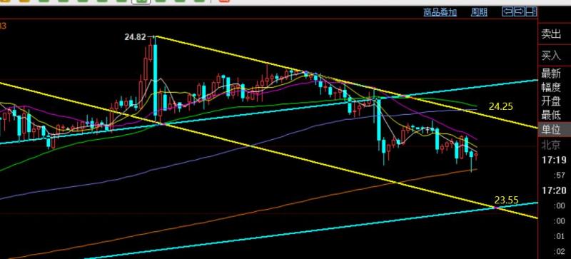 第四,白银方面:当前维持黄色下降通道,阻力下移24.25下,其下建议压制继续空,支撑两通道的交合处23.55一线;
