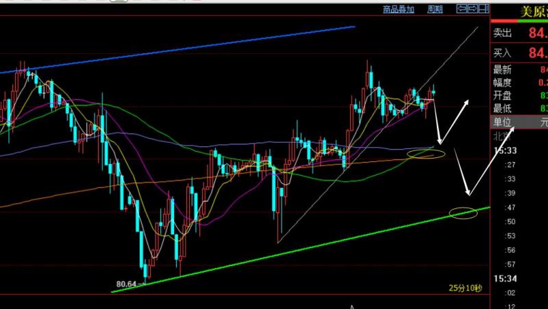 原油方面:周视频指出,上周五的一波拉升,结束短期下跌调整,会逐步再次摸高上行,82.7上建议逢低看涨;今日来看,日线虽收报上影线K线,但上行逼空通道还在,回测关注支撑两个位置,一是83一线逢低企稳多,一个是82一线逢低企稳多,两者都可以小损去试探考虑,阻力目标84.8及上方;