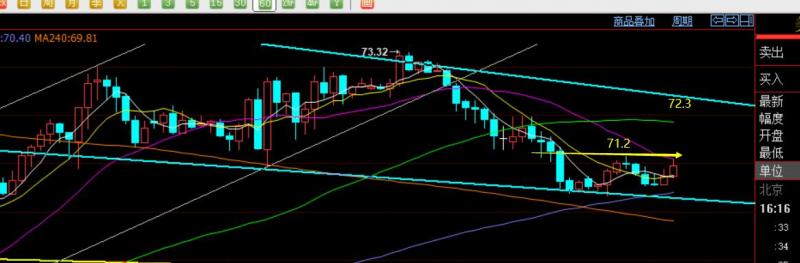 原油方面:昨日再次承压73下跌一波,最终抵达70.5目标;日线级别上,已经四次承压于73一线,此位置强调及其关键,618分割压力、日线中轨,前期开跌口等多重共振,昨日收阴回测,那么今日反弹仍需空为主试探;早间提示71.2下看压制,已经跌了一波,只是力度不大,那么当前关注71.2压力,若突破则关注72-72.3区域压力,这两个都是日内承压点,支撑70.2-70一线,失守则可以进一步下探至69-68.8;