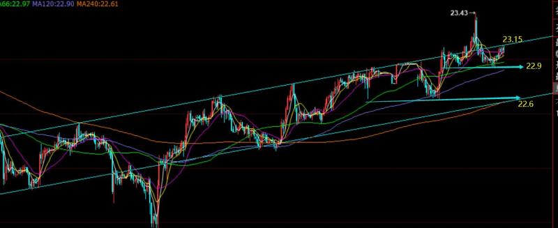 第四,白银方面,昨日美盘尽管 也是一样冲高走跌,但半夜收盘前,并未和黄金一样又走弱一波,而是横盘支撑22.9上方,起涨点并未失守;此时小时线走法也比黄金略强,日线同样是长上影受压形态,今日先拉升修正再看压制震荡为主,22.9-23支撑上先看反弹,以22.9作为一定风水岭防守,阻力23.25-23.3,小概率就是突破23.4昨日高点,冲击23.7再压制回落震荡;操作上,继续保持低多为主;