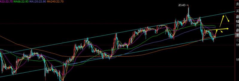 第四,白银方面,比较简单,就围绕上行慢通道来操作,下轨支撑是22.6,也是早评提示的继续做多参考点,抓个0.2-0.3美元就可短线考虑收割,阻力22.85凌晨高点,破位才能冲击23-23.2;今日偏大压力是23.2,冲击压制不过,可计划短空,区间内继续整理;