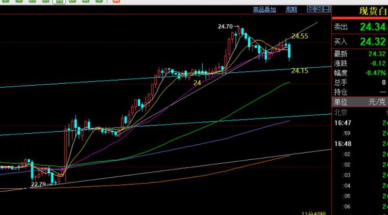 白银方面,隔夜压制24.7一线,也是昨日提及的日线年均线承压回落一波,今日依托顶底位置24.3通知学员直接短多,24.55下盈利一波;当前回落,则关注24.15一线支撑得失,风水岭位置是24,只要守住24关口,日线还是偏强对待,阻力24.55和24.7,暂时区间内要横盘运行下;