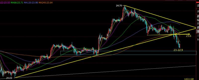 白银方面,昨日隔夜失守23.6支撑,日线10均线破位,意味着短期会延续压制,因此早盘23.6一线直接给学员提示继续空,且是小波段,目标23逢低到位,抓住0.4-0.6美元,就等同于黄金20-30美金,盈亏比是很厉害的,一个早盘就完成了波段;此时23-22.9有一定支撑,阻力23.6,区间内也要震荡修复下,可区间内操作;